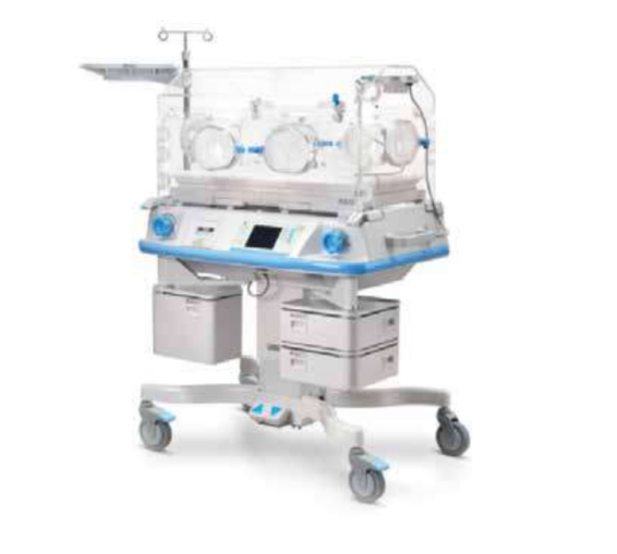 A neonatal incubator is a rigid box-like enclosure in which an infant can be kept in a controlled environment for observation and care. The device may include a heater, a fan, a container for water to add humidity, a control valve through which oxygen may be added, and access ports for nursing care
