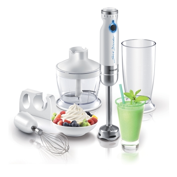 Sencor خلاط يدوي ابيض (مضرب كهربائي) مع وعاء خلط+قطاعة+مضرب بيض 800W