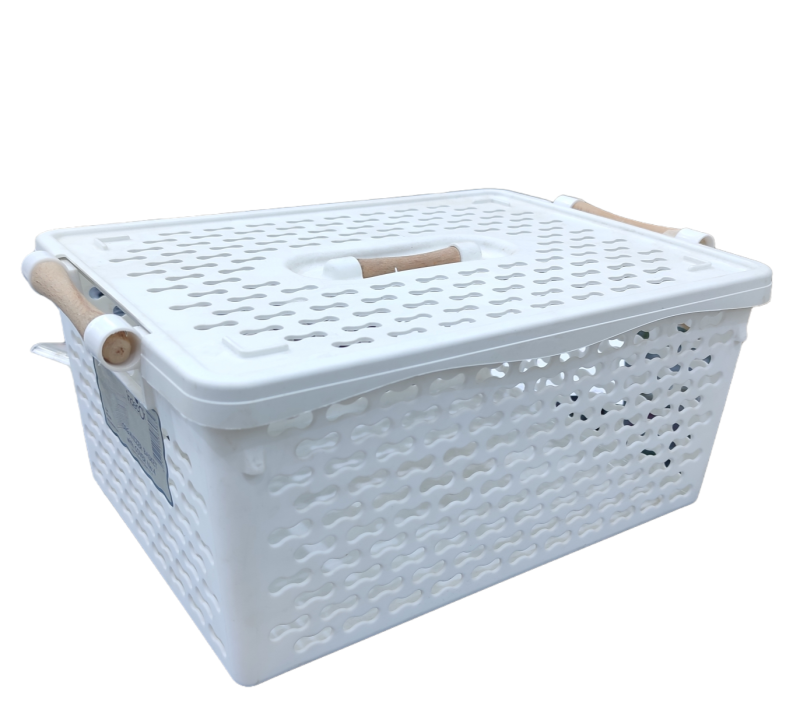 سلة بلاستيك مع غطاء حجم كبير مستطيل مع فتحات