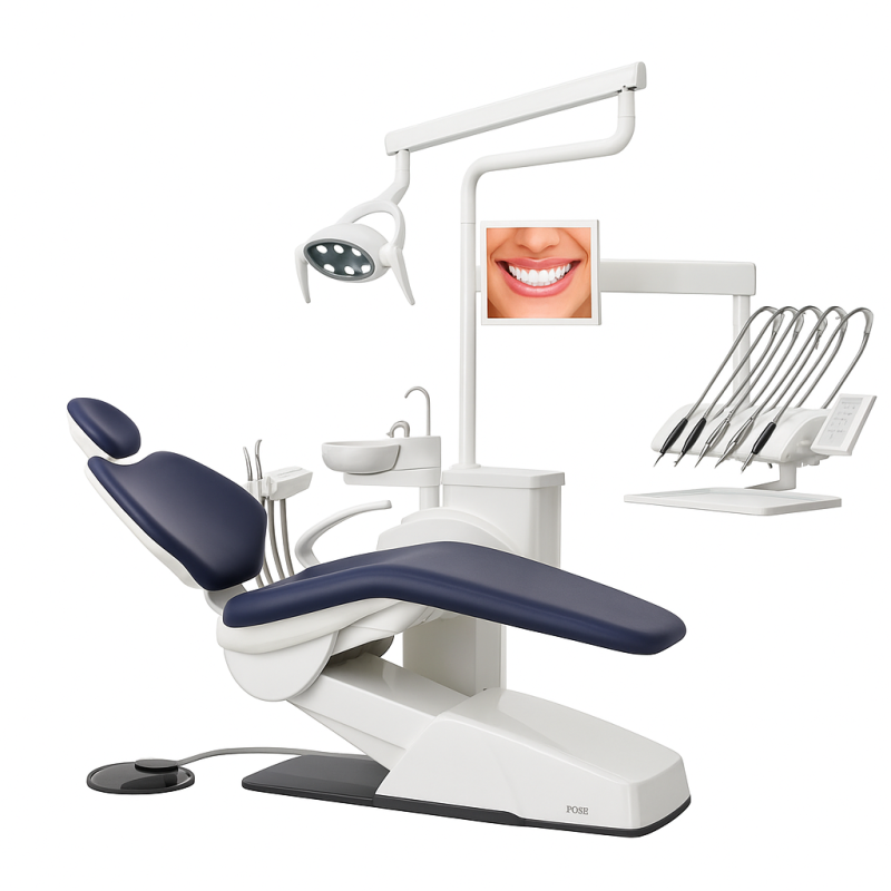 A dental engine is a large chair-side appliance (often including the chair itself) for use in a dentist's office. At minimum, a dental engine serves as a source of mechanical or pneumatic power for one or more hand-pieces.